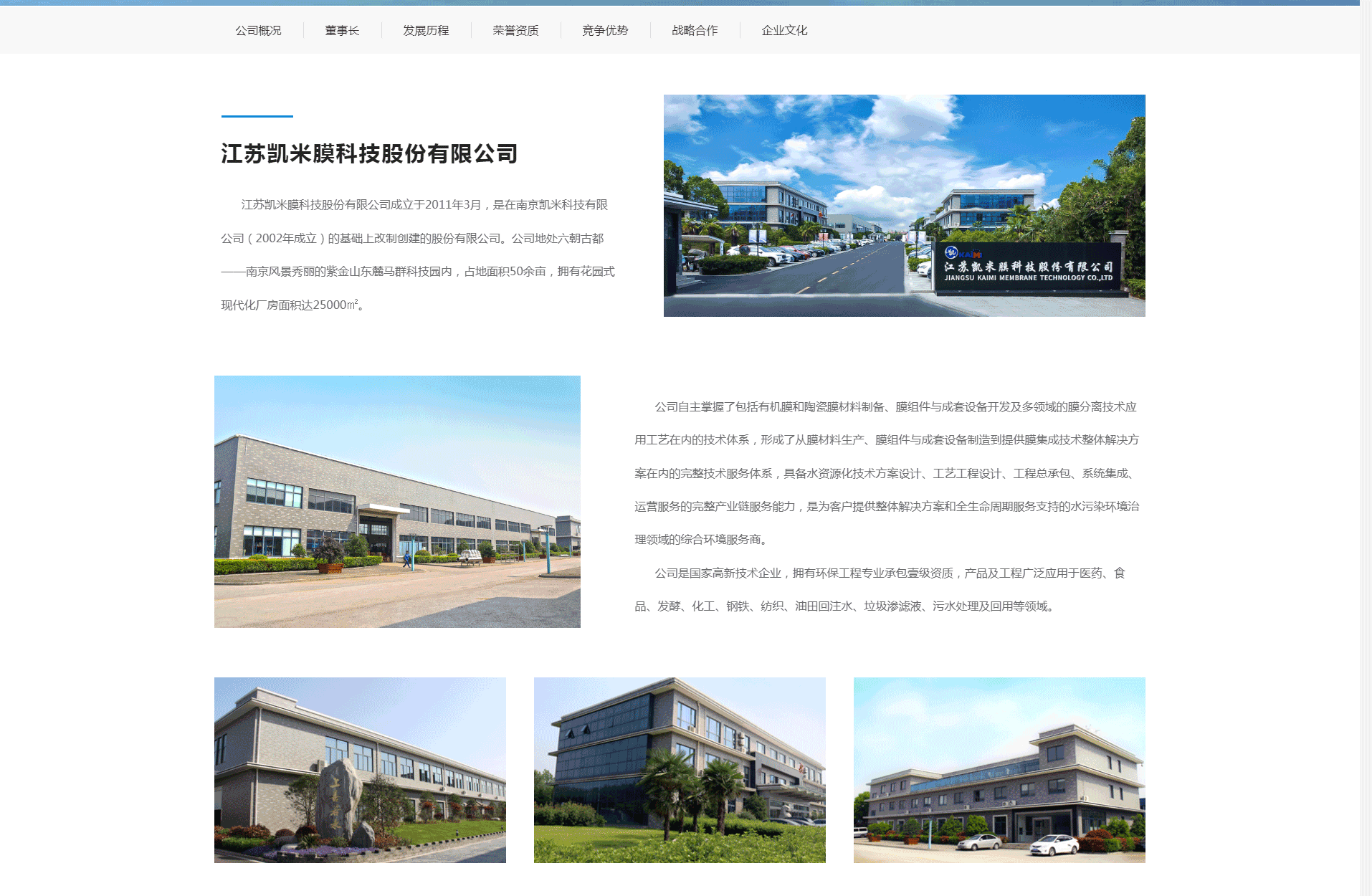 江蘇凱米膜科技股份有限公司成立于2011年3月,是在南京凱米科技有限公司(2002年成立)的基礎上改制創建的股份有限公司。公司地處六朝古都——南京風景秀麗的紫金山東麓馬群科技園內,占地面積50余畝,擁有花園式現代化廠房面積達25000㎡。