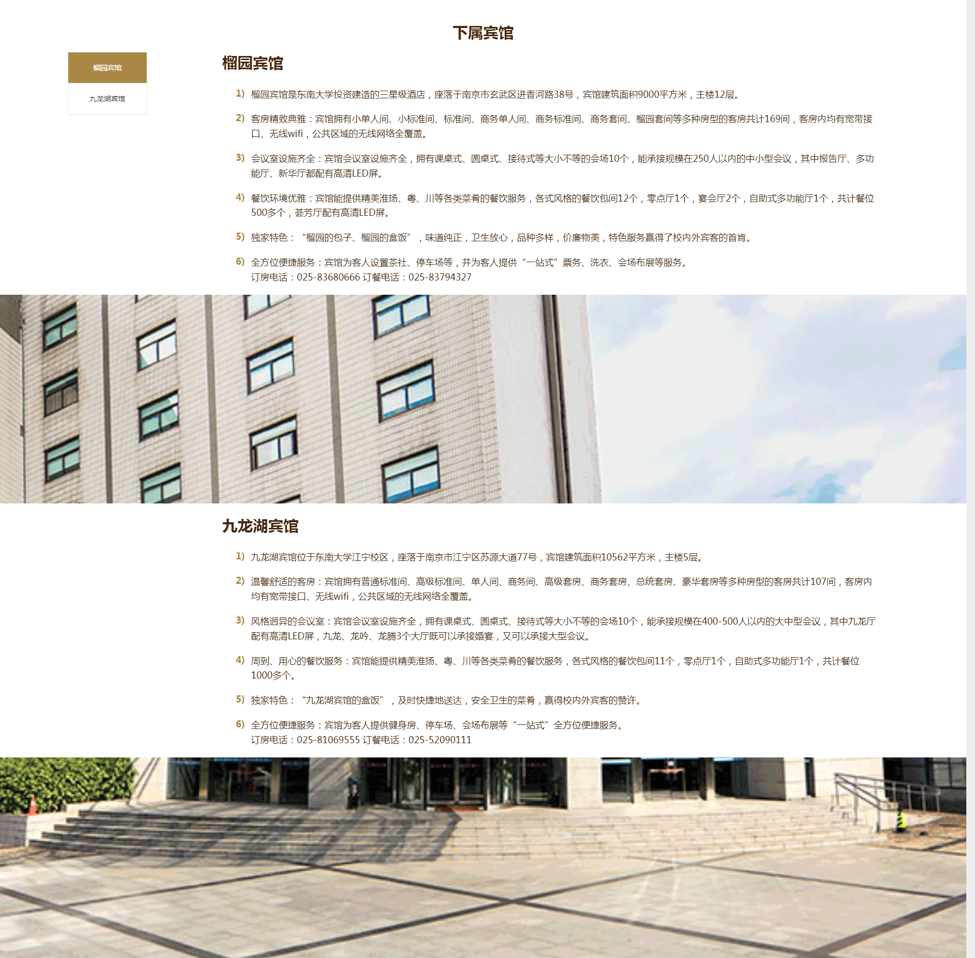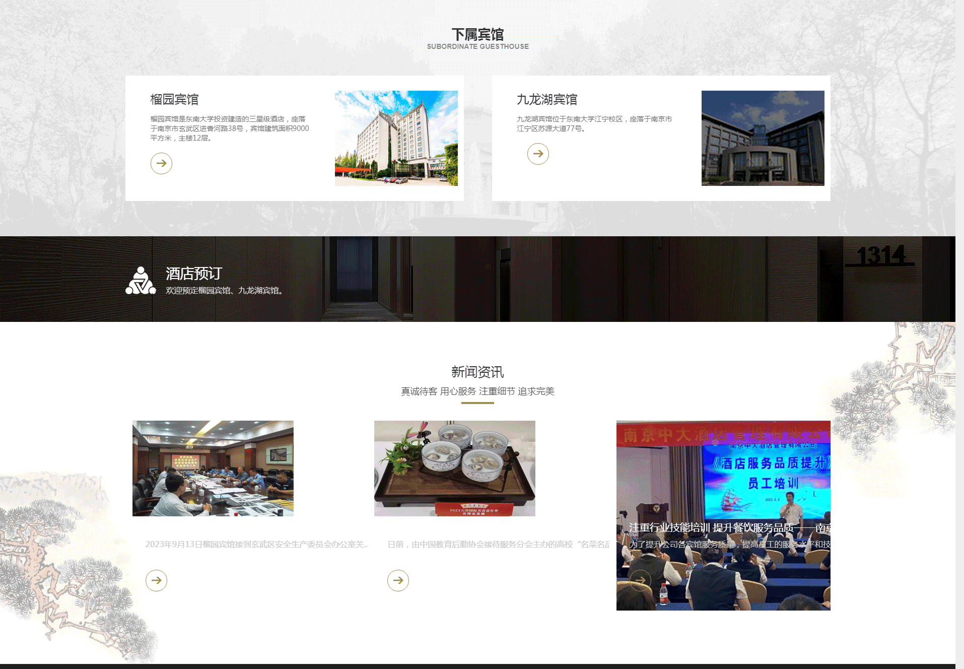 隸屬于東南大學資產經營管理有限公司,是東南大學全資企業。成立于2014年12月28日,公司下屬有榴園賓館、九龍湖賓館。公司憑借著完善的硬件設施,溫馨、周到的對客服務以及依托東大濃郁的文化氛圍,竭誠為每一位住店的賓客提供賓至如歸的優質服務。