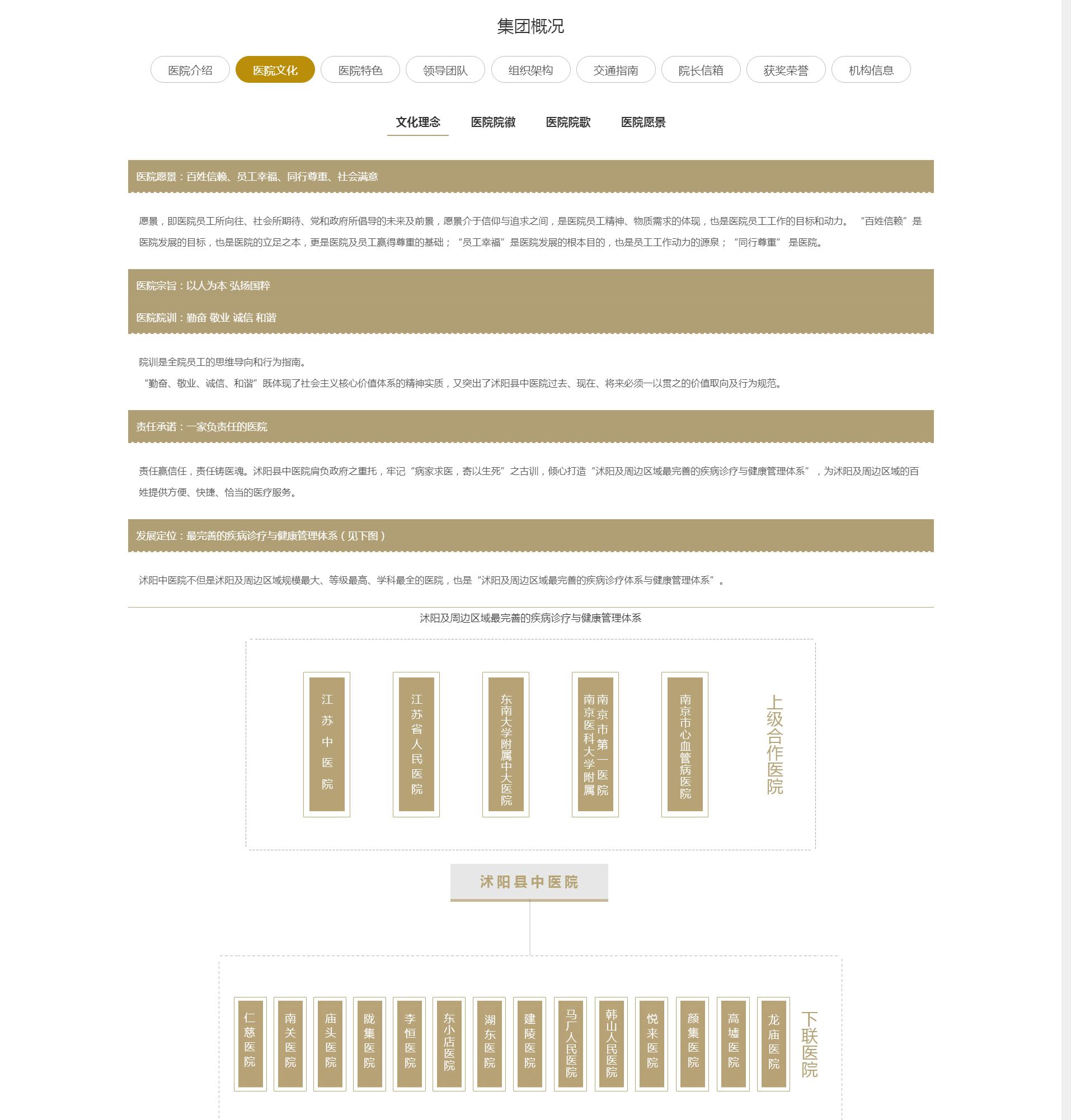 沭陽縣中醫院是一所集醫療、教學、科研和健康管理為一體的國家三級乙等中醫院,是JCI國際認證醫院、南京中醫藥大學附屬醫院籌建單位、揚州大學醫學院附屬醫院、國家級胸痛中心(標準版)、國家級核醫學科建設示范醫院、江蘇省中醫院協作醫院、江蘇省人民醫院技術支持醫院、南京都市圈中醫醫院合作發展聯合體、東南大學附屬中大醫院合作醫院。醫院綜合實力在全國縣級中醫院中位居前列。