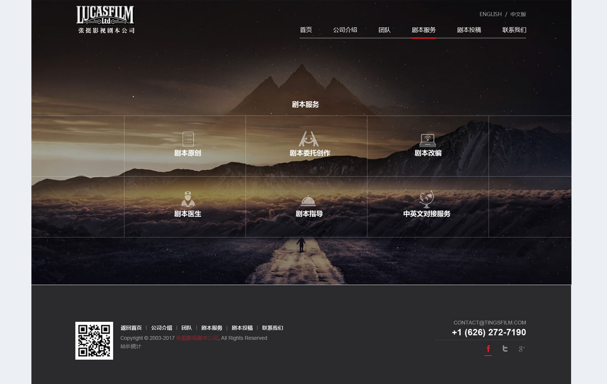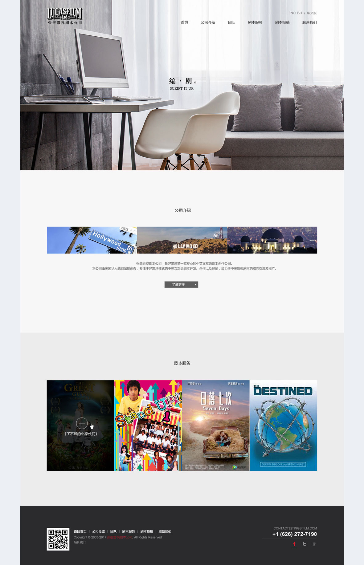 張庭影視劇本公司,在好萊塢開展,可以提供模式的商業電影劇本,美劇模式的連續劇團隊寫作,題材多樣的網劇創作,中英文雙語的專業劇本,高效的IP劇本改編,公司創作理念,好電影,從專業劇本開始。好劇本,從專業編劇開始。我們不是影視劇的生產者,我們只做優秀影視劇的奠基人。