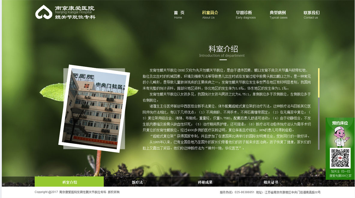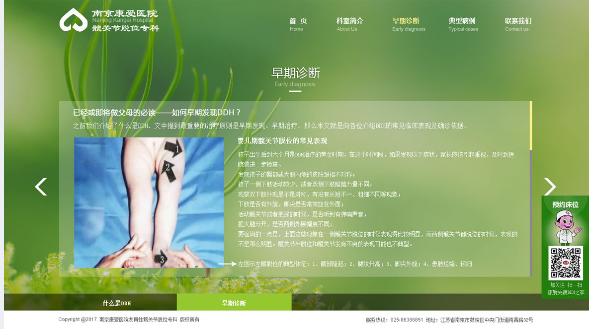 康愛醫院發育性髖關節脫位(DDH)又稱為先天性髖關節脫位,是由于遺傳因素、關節囊與韌帶松弛、胎位及出生時的機械因素、環境及襁褓方法等導致患兒出生時或在發育過程中股骨頭脫出髖臼之外。是一種常見的小兒畸形,是導致肢體殘疾的主要疾病之一。 諸蓬生醫師1985年首創中西醫結合新手法復位、體外配戴超蛙式復位架的治療方法