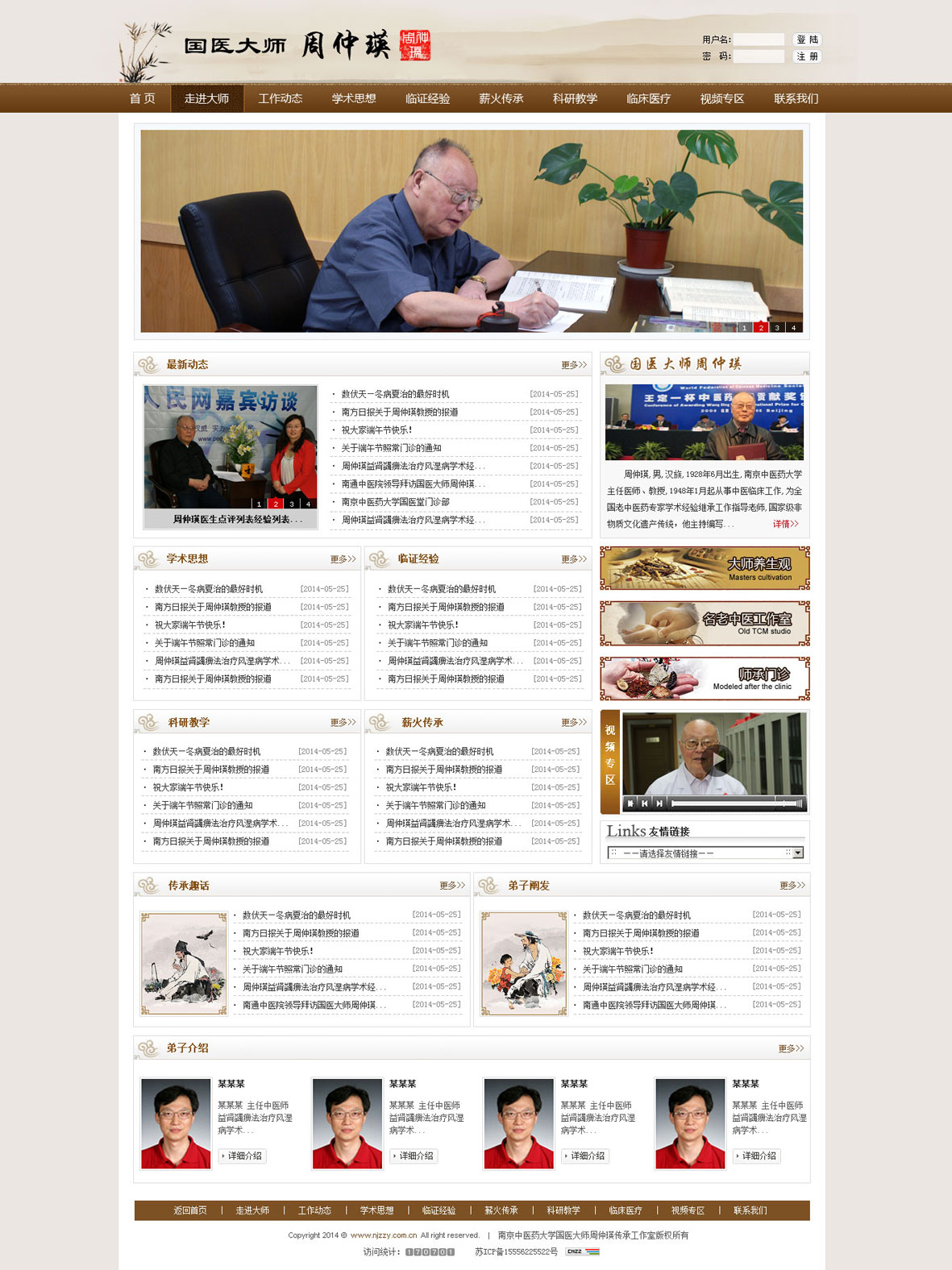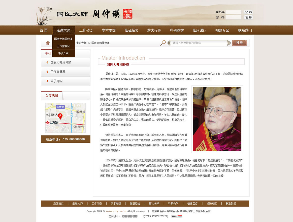 周仲瑛,男,漢族,1928年10月出生,南京中醫藥大學終身教授、主任醫師、博士生導師。世代中醫,幼承庭訓,隨父周筱齋教授學習中醫。1948年開始從事中醫臨床工作,1956年進入南京中醫學院附屬醫院(江蘇省中醫院)工作,先后任住院醫師、講師、主治醫師、副教授、副主任醫師、主任醫師、副院長等職。1983年調任南京中醫學院,任院長。目前擔任中國中醫科學院學術委員、中華中醫藥學會終身理事、江蘇省中醫學會終身名譽會長等職。 周仲瑛教授是國務院首批政府特殊津貼獲得者、全國首批(1991年)、第三批(2003年)、第四批(2008年)和第五批(2012年)繼承老中醫專家學術經驗導師,先后獲全國老中醫藥專家學術思想優秀指導老師、全國優秀中醫臨床人才研修項目優秀指導老師、全國高等學校先進科技工作者稱號、全國優秀研究生導師稱號、第一批國家級非物質文化遺產項目"中醫診法"代表性傳承人、世界中醫藥學會聯合會首屆"王定一杯""中醫臨床國際貢獻獎"、全國首屆"國醫大師"等多項榮譽稱號。曾任七屆全國人大代表、國務院學位委員會學科評議組(中醫)成員、國家中醫藥管理局中醫藥工作專家咨詢委員會委員、國家教委科技委醫藥衛生學科組組員、衛生部藥品審評委員會委員,江蘇省重點學科"中醫內科學(急癥)"學科帶頭人等。曾受聘于新加坡中醫學院客座教授、廣東省中醫研究院客座研究員、浙江中醫學院附屬醫院學術顧問、天津中醫學院客座教授等職。